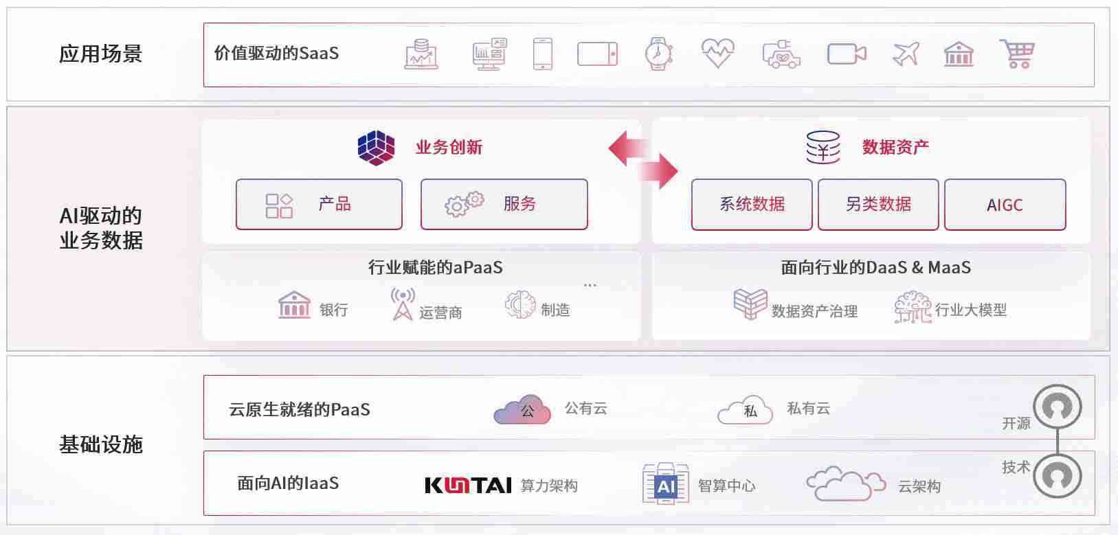 数字时代,,围绕企业数字化转型的关键要素,,EBPAY钱包官网数码开创性的提出数云融合战略和技术体系框架,,,,着力在云原生、、数字原生、、、、AI原生和信创产业上架构产品和服务能力,,,,为处在不同数字化转型阶段的快消零售、、、汽车、、、金融、、、医疗、、、、政企、、、教育、、运营商等行业客户提供泛在的敏捷IT能力和融合的数据驱动能力,,,构建跨界融合创新的数字业务场景和新业务模式,,,助力企业级客户建立面向未来的核心能力和竞争优势,,,全面推动社会的数字化、、、智能化转型升级。。。。